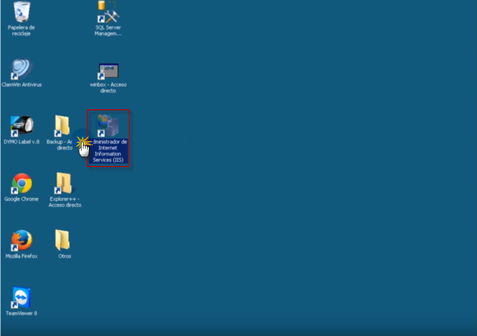 Para ingresar tenemos que buscar en nuestras PC o Servidor el ícono de Administrador de Internet Information Services (IIS) y al encontrarlo presionaremos el ícono para que se muestre la ventana.
