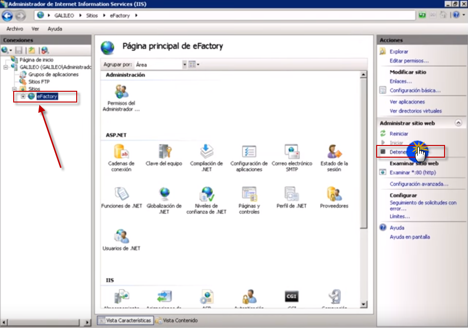 Te explicamos paso a paso como Detener y Reiniciar el Sitio web de eFactory ERP en Internet Information Server IIS.
