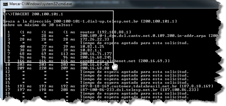 el comando TRACERT seguido del dominio o IP a diagnosticar y pulse Enter. La sintaxis es la siguientes: