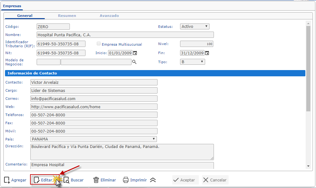 En este artículo explicaremos detalladamente como se edita campos en la ficha de empresa en eFactory. Los datos de la Empresa es importante para nuestro sistema.
