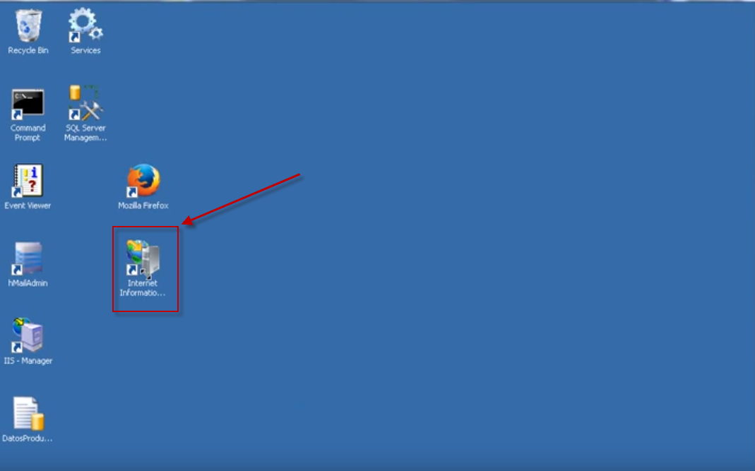 Para ingresar tenemos que buscar en nuestras PC o Servidor el ícono de Administrador de Internet Information Services (IIS) y al encontrarlo presionaremos el ícono para que se muestre la ventana.