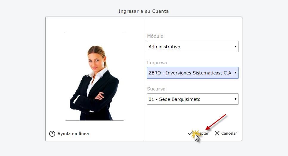 Administrativo y presionamos el botón