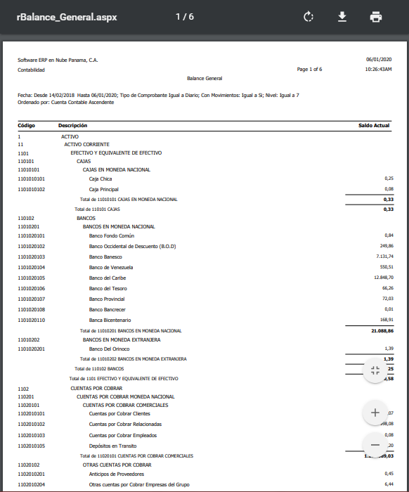 Habiendo configurado previamente los parámetros para el Balance General, se procede a generarlo presionando el botón