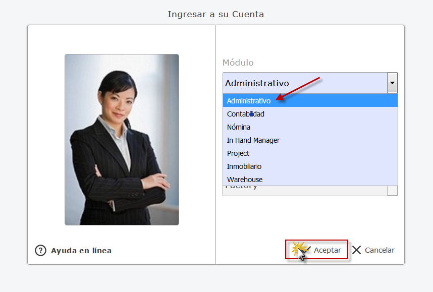 Administrativo, Empresa y Sucursal de la empresa y presionamos el botón