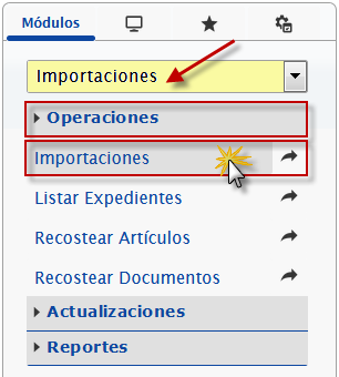 b. En el módulo Importaciones, desplegamos el componente Operaciones y activamos el sub componente Importaciones.