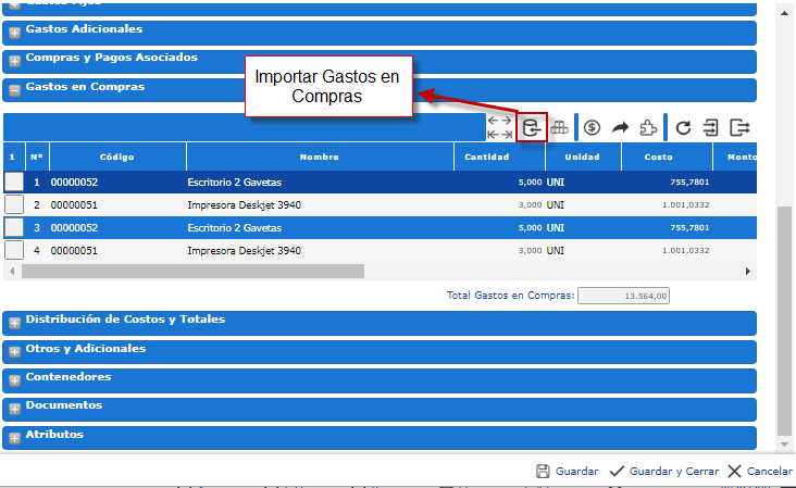 a. Hacemos clic donde dice Distribución de Costos y Totales, y procedemos a inspeccionar nuevamente los artículos importados, en la sección correspondiente,