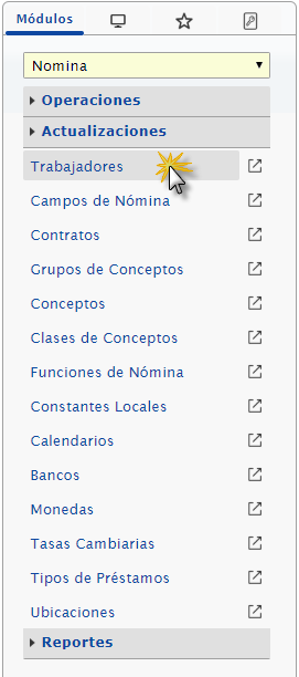 Cuando un nuevo trabajador se registra en la empresa es necesario cargarlo en el formulario de Trabajadores, que se encuentra en el Módulo de Nómina.
