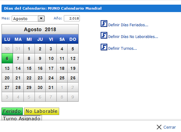 Es recomendable que a principio de cada año defina los días no laborables, feriados y los turnos para evitar inconvenientes en el transcurso del año,