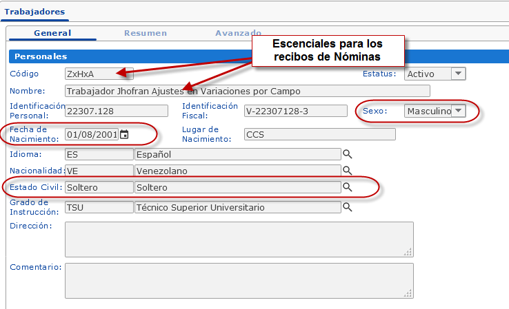 Para la generación de los Recibos de Nómina los datos más importantes de trabajadores son: