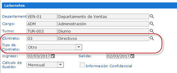 Vacaciones: Indican inicio y fin de las vacaciones de un empleado. Estas son consideradas en los contratos de sueldos y salarios, ya que los días de vacaciones no