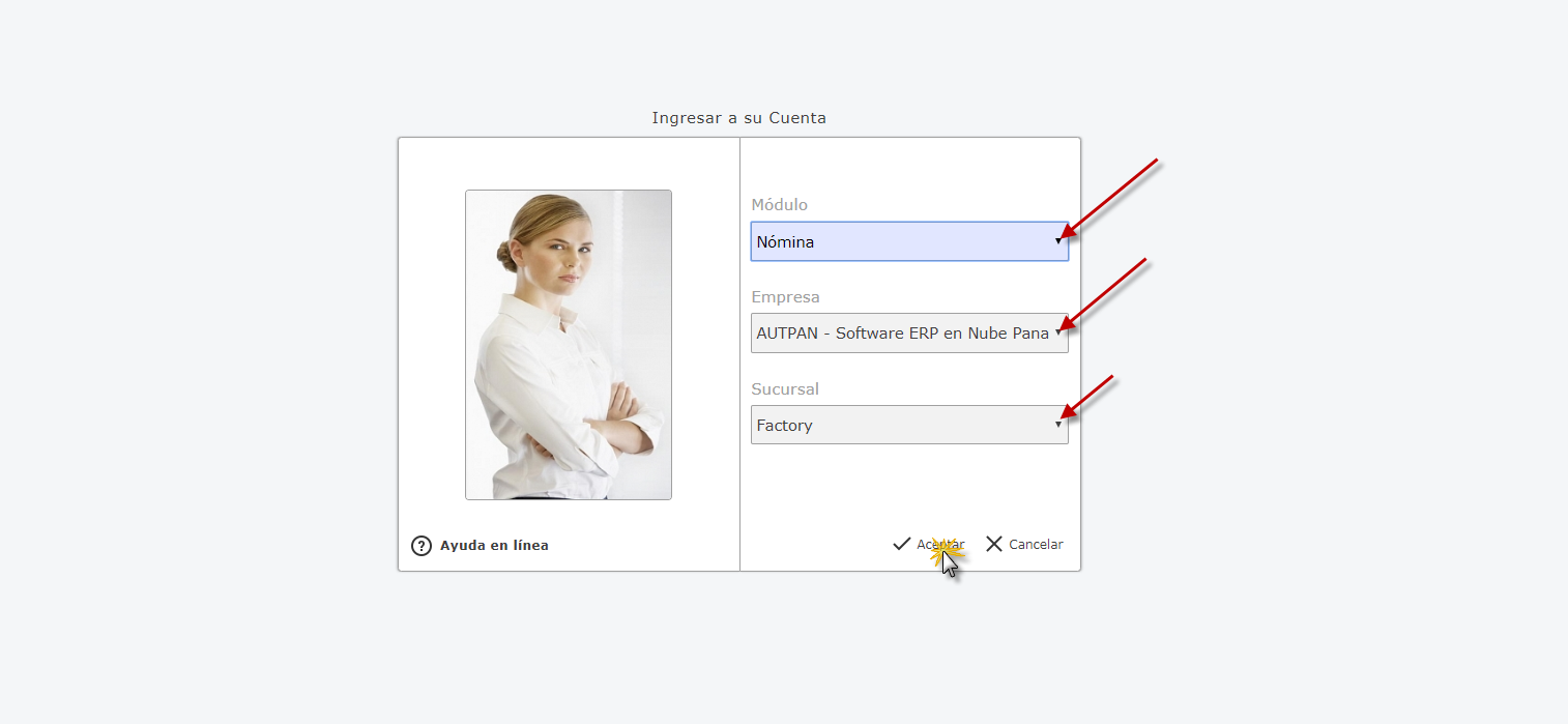 a. Al iniciar eFactory, Seleccionamos la Aplicación