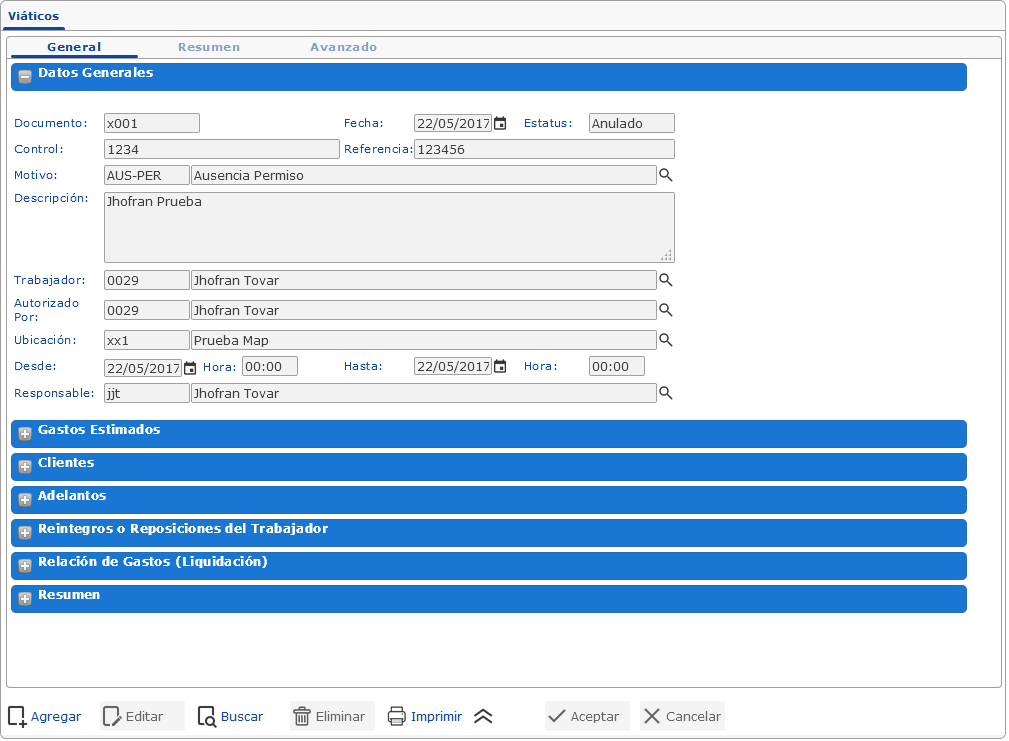 Esta funcionalidad permite crear, controlar y eliminar los viáticos de los trabajadores pertenecientes a su empresa que ameriten utilizar viáticos.