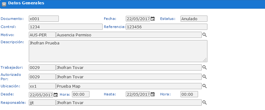 La sección de Reintegros o Reposiciones del Trabajador se divide en diferentes renglones, que contienen los siguientes campos:
