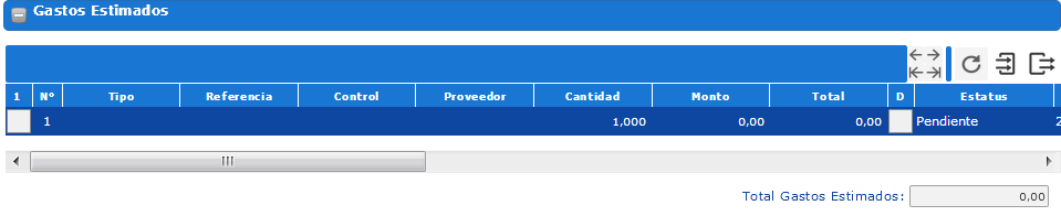 , de igual modo se puede eliminar los gastos que desee, seleccionando la casilla ubicada a la izquierda del número de renglón y posteriormente utilizando el ícono