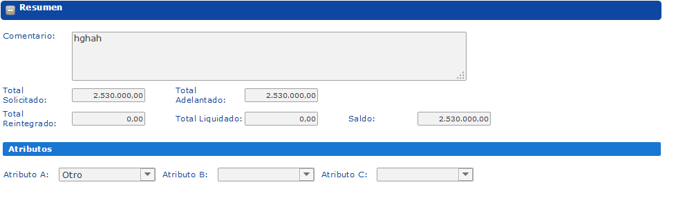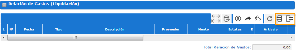 Sección Relación de Gastos (Liquidación)