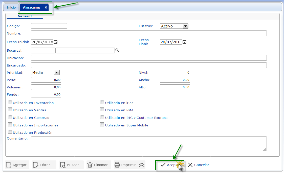 En Breve Le Explicaremos Como Crear y Realizar Diferentes Acciones Dentro de la Herramienta "Almacenes"