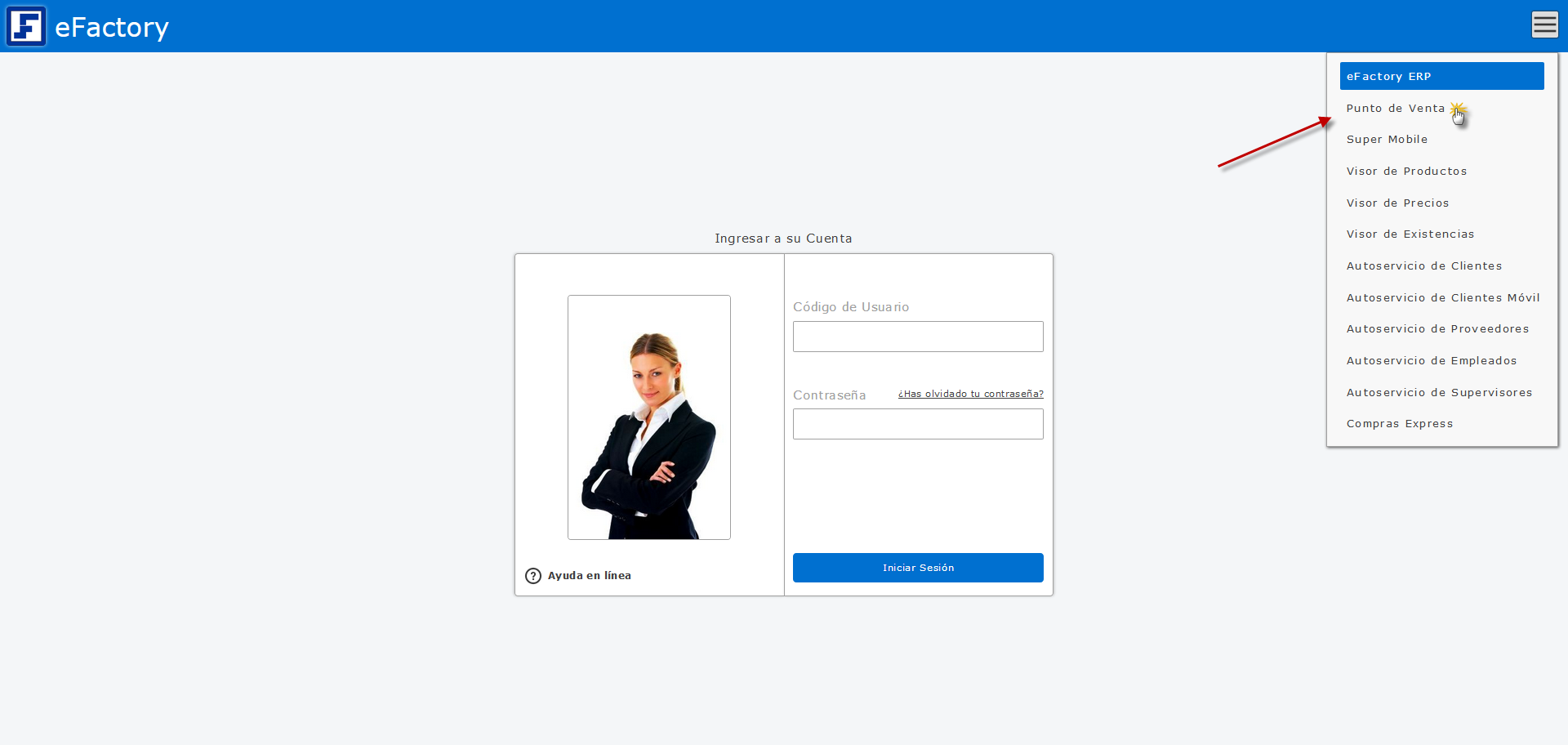 a. Antes de iniciar eFactory, nos ubicamos en la parte superior derecha y presionamos el botón
