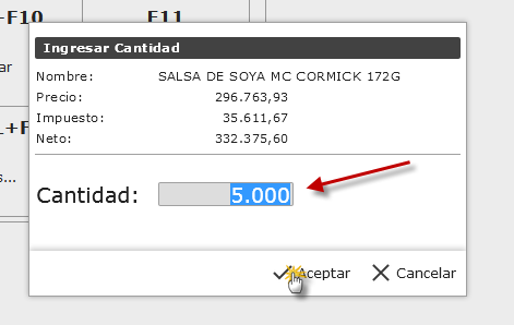 a. Luego se los desplegara un pequeño cuadro, en el deberemos colocar la cantidad del articulo que queramos y para finalizar presionaremos