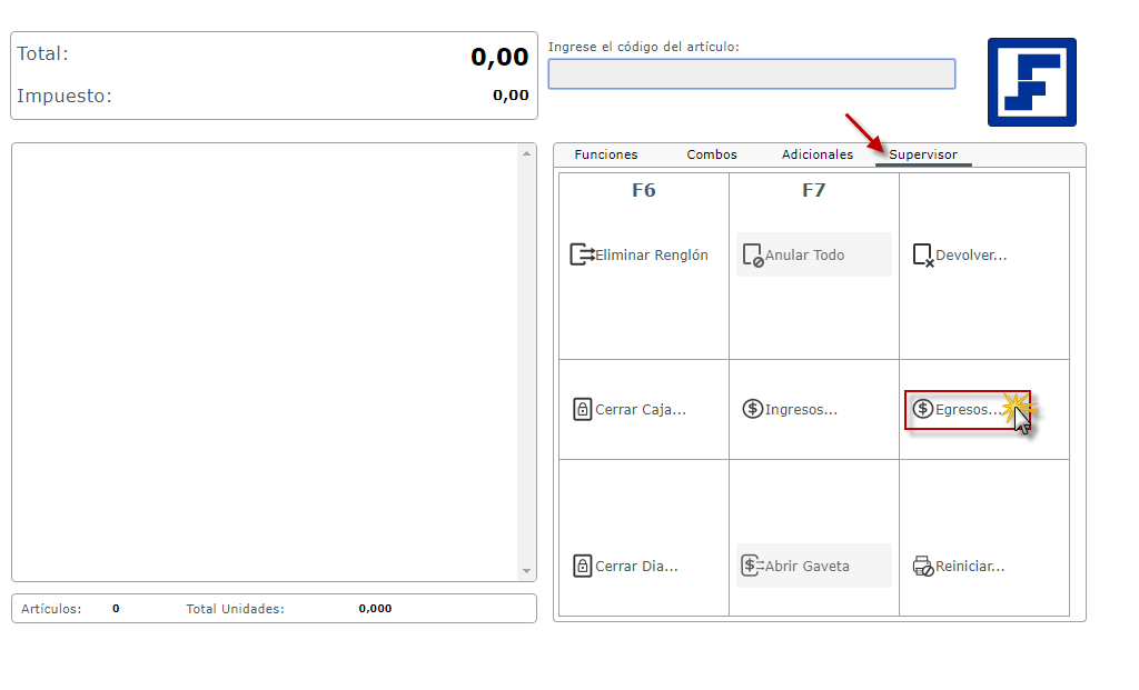 Nota: El Egresos de la caja es para que al empezar el día el cajero recibe el ingreso de una caja con una cantidad de dinero en efectivo para el cambio necesario que pueda necesitar en el día,