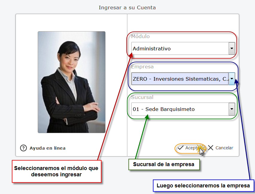 y sucursal de la empresa y presionaremos el botón