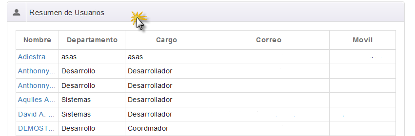 Pulse en el nombre del usuario, ubicado en la parte superior de cada ficha, si está utilizando la vista Ficha y si está en la vista Resumen presione igualmente en el nombre que esta está ubicado en la columna Nombre.
