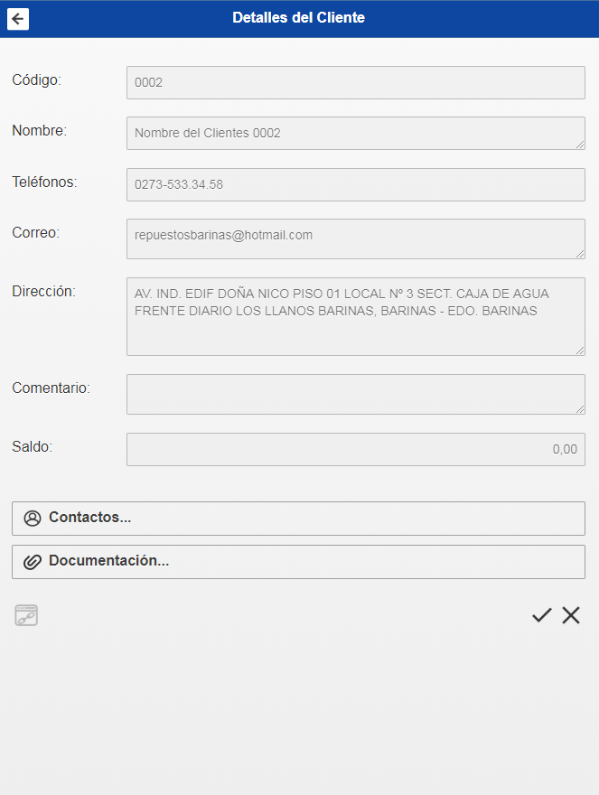Al seleccionar el Cliente observará una pantalla con toda la información de este. Verifique si el cliente es el deseado, si es correcta haga click en el botón de confirmar.