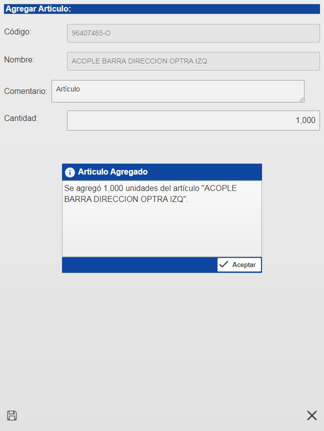 Luego se le mostrara una nueva ventana en la cual podrá agregar la cantidad de articulos que