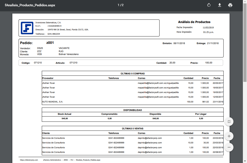 NOTA: La mayoría de los formatos básicos de impresión de documentos mostrarán el nombre, RIF, teléfonos y dirección de la información genérica del documento si está definida. Si cualquiera de estos cuatro campos está vacío entonces tomará ese campo de los datos del cliente.