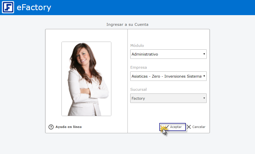 a. Para iniciar en eFactory tenemos que ingresar con nuestro Usuario y Contraseña y seleccionar el botón