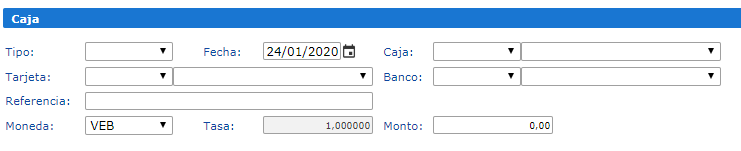 En la Sección Caja encontrará los siguientes campos: