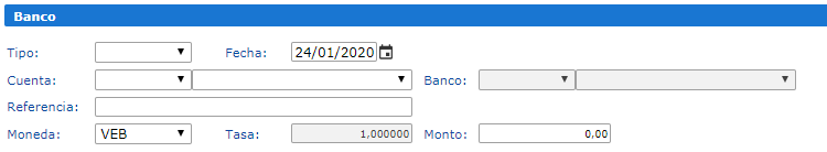 En la Sección Banco encontrará los siguientes campos: