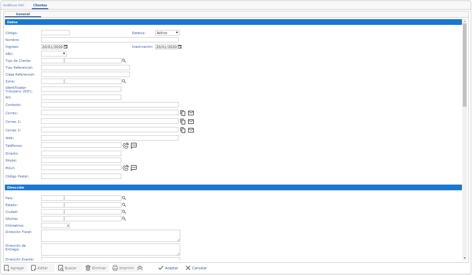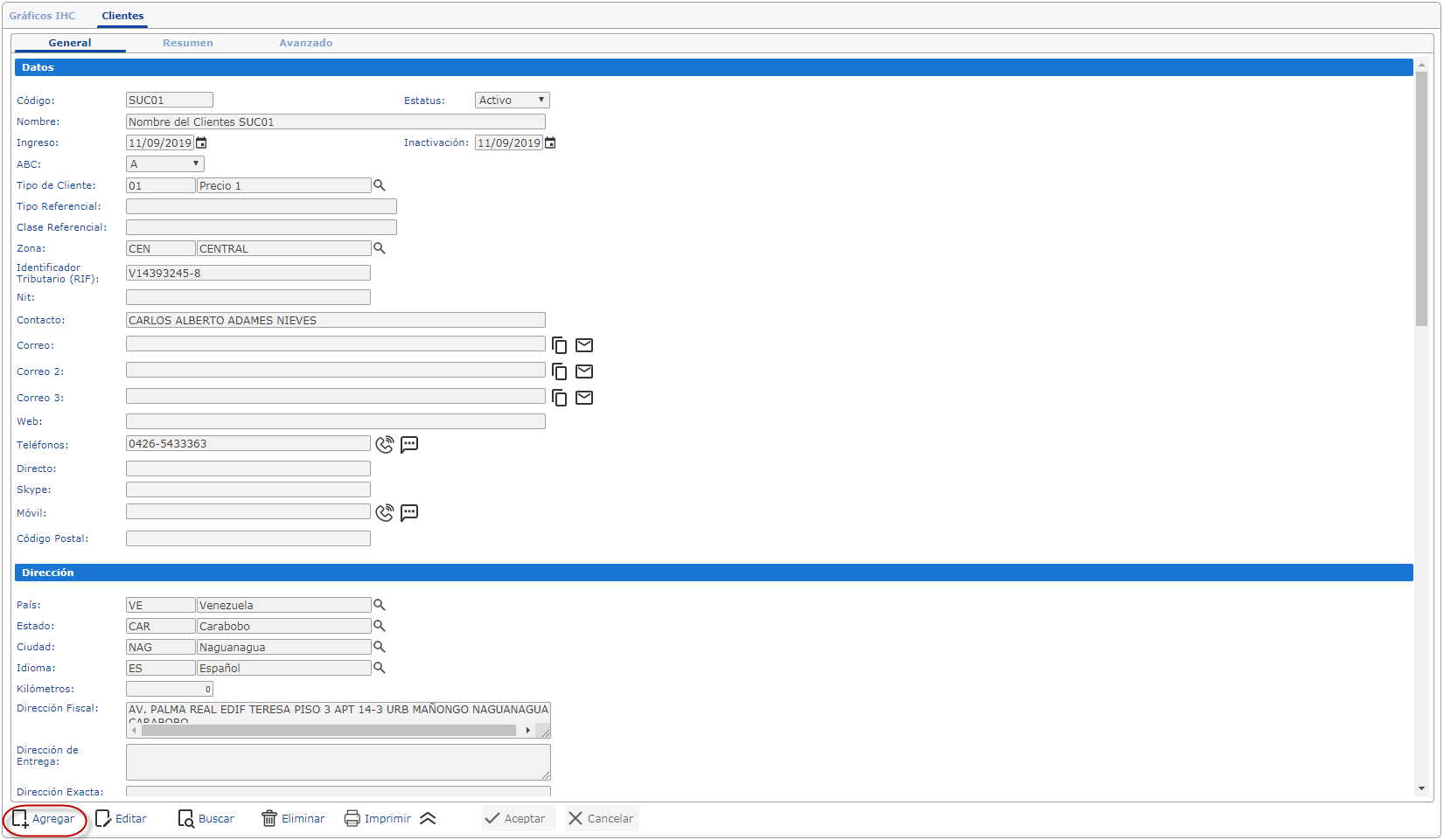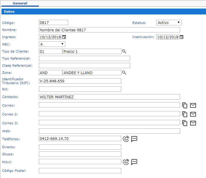 En esta sección se introducen los datos básicos del cliente como lo son: