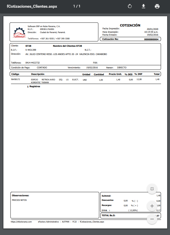 y se generará un documento PDF de la cotización que acabas de realizar.