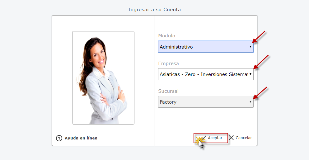 Administrativo Empresa y Sucursal de la Empresa y presionamos el botón