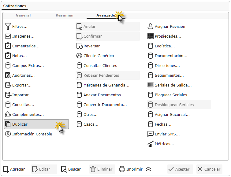 Nota: También podemos ubicarnos en la ficha Resumen y ir buscando la cotización que deseemos duplicar.