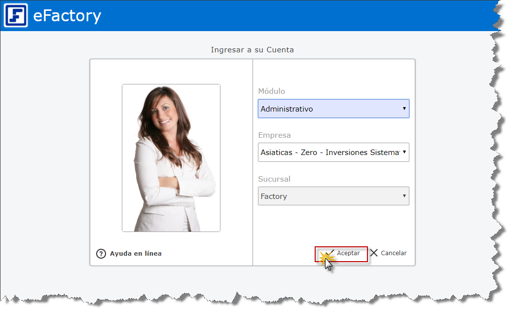 a. Para iniciar en eFactory tenemos que ingresar con nuestro Usuario y Contraseña y seleccionar el botón