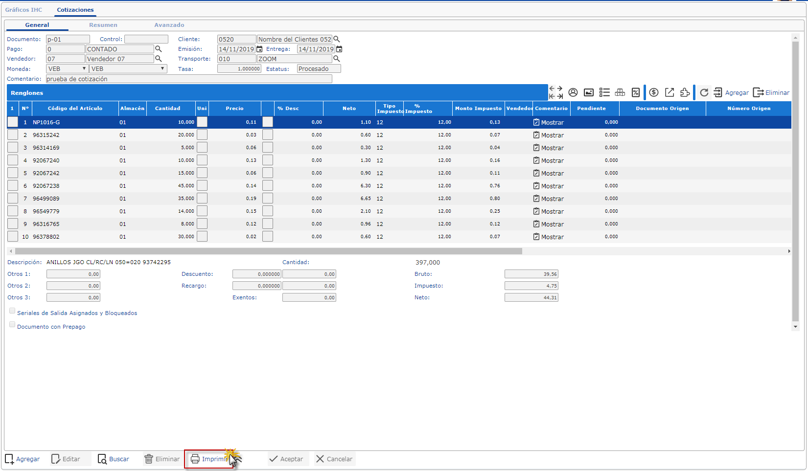 Por otro lado, para buscar una cotización debe hacer clic en el ícono