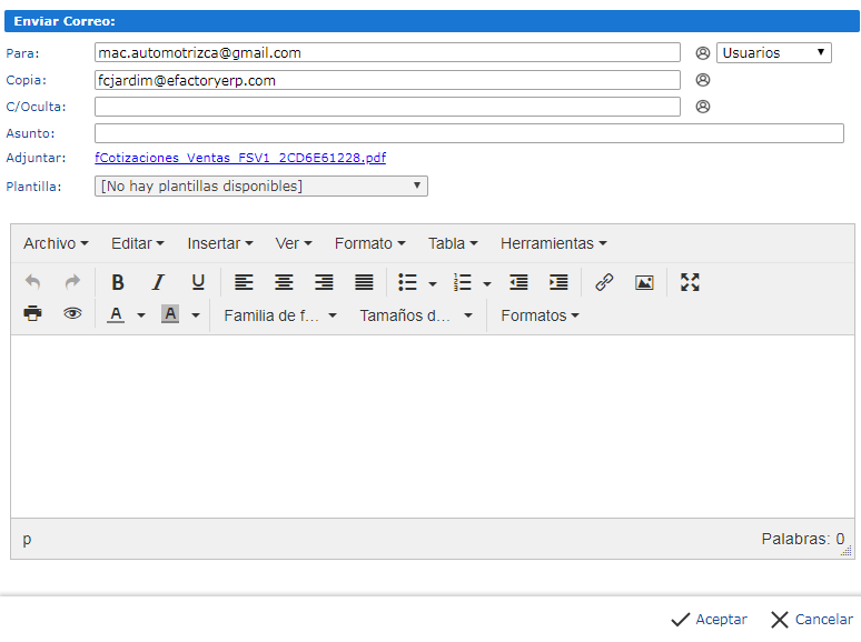 Te explicamos los pasos para enviar un Formato de Cotización por correo electrónico en eFactory ERP.