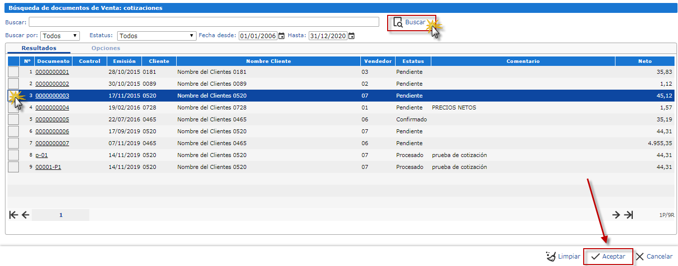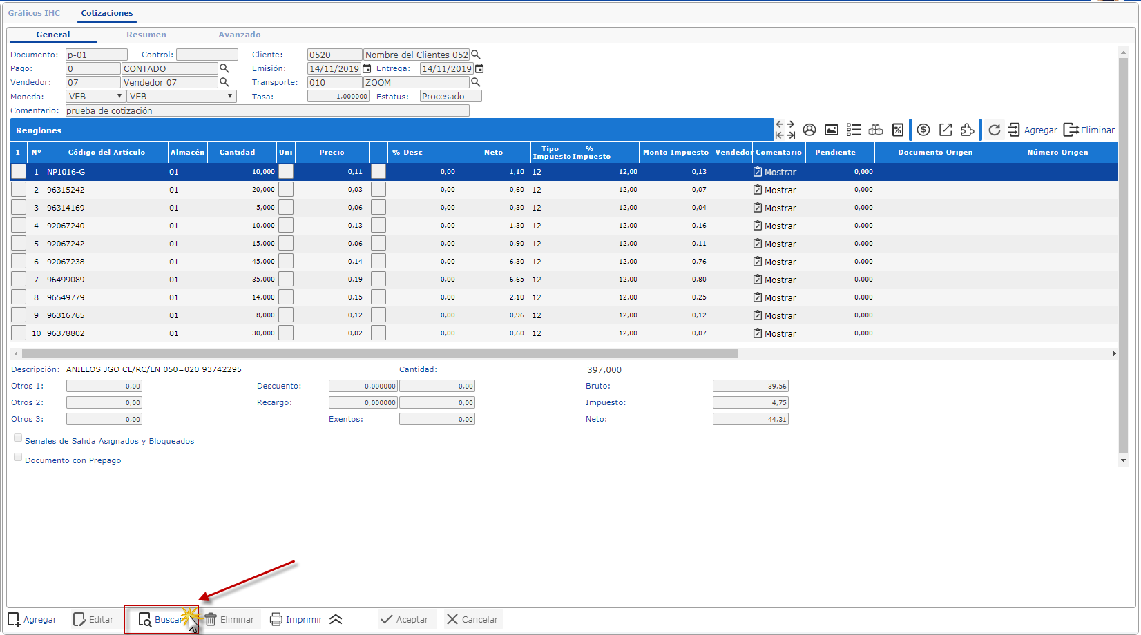 cliente solo deberemos seleccionar la venta que deseamos cotizar para ello oprimiremos el boton