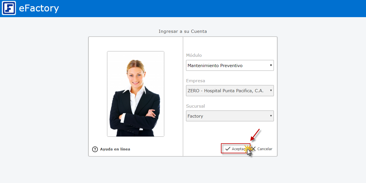 a. Al iniciar eFactory con nuestro Usuario y Contraseña, Seleccionamos el Módulo