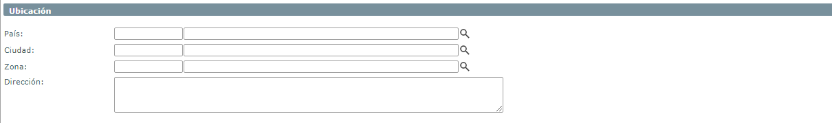 c. También tenemos la sección de Ubicación Esta sesión está diseñada para capturar la ubicación física del personal responsable de la gestión de mantenimiento, en él se deben detallar el País, la Ciudad, la Zona y por último la Dirección. (Los tres primeros campos son obligatorios).