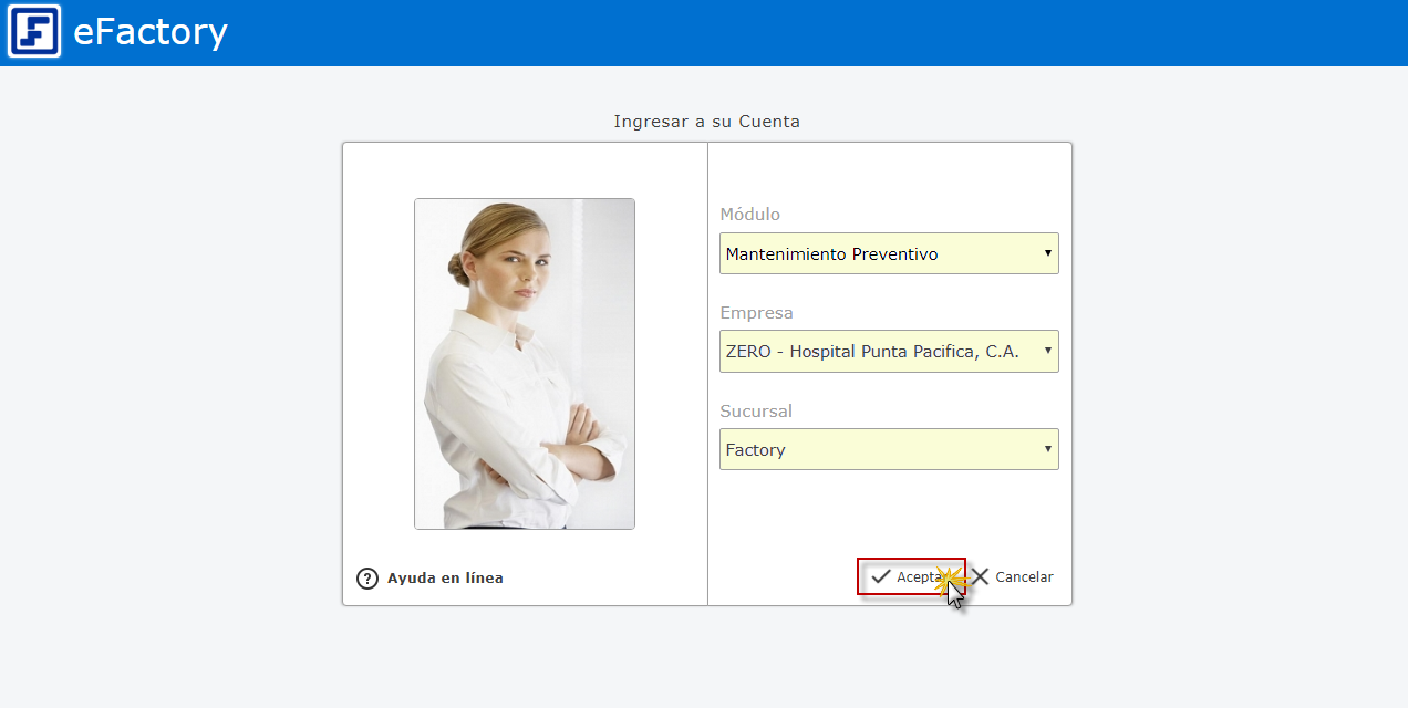 a. Al iniciar eFactory con nuestro Usuario y Contraseña, Seleccionamos el Módulo