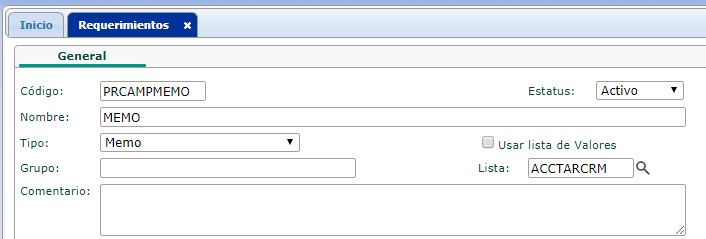 b. Después observaremos en la pantalla de Requerimientos los siguientes campos para agregar un requerimiento que son: