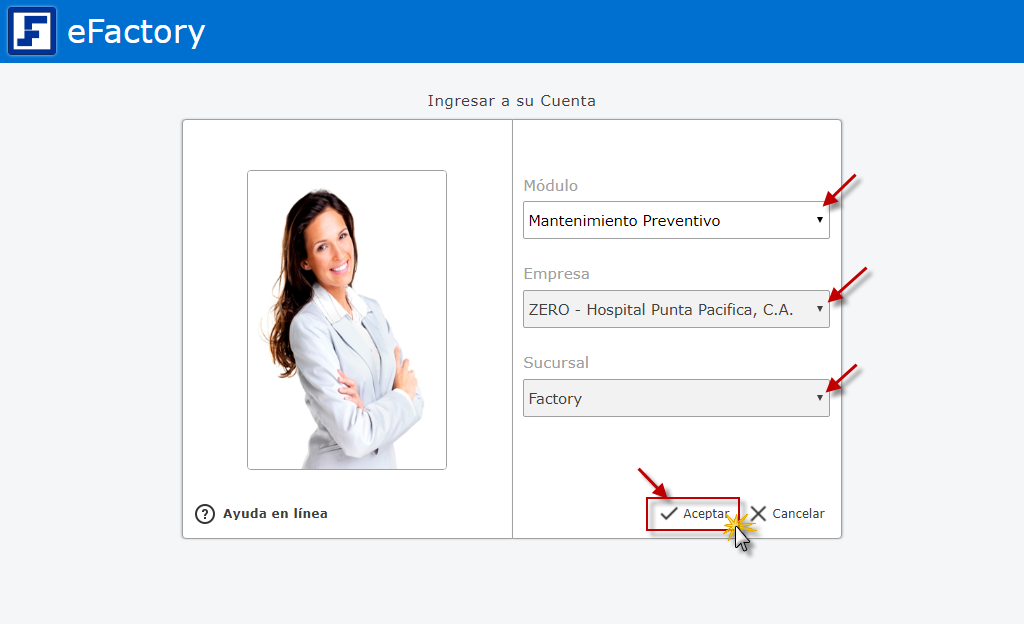 a. Al iniciar eFactory con nuestro Usuario y Contraseña, Seleccionamos el Módulo