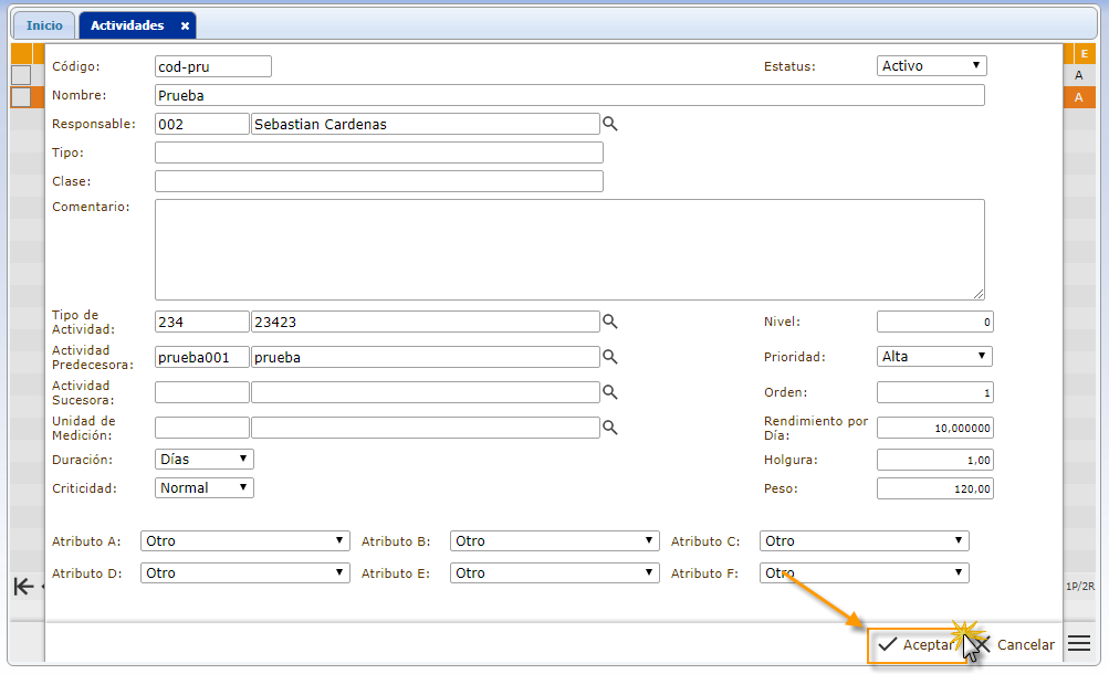 c. Para finalizar el llenado de campos para agregar una actividad, procedemos a presionar el botón