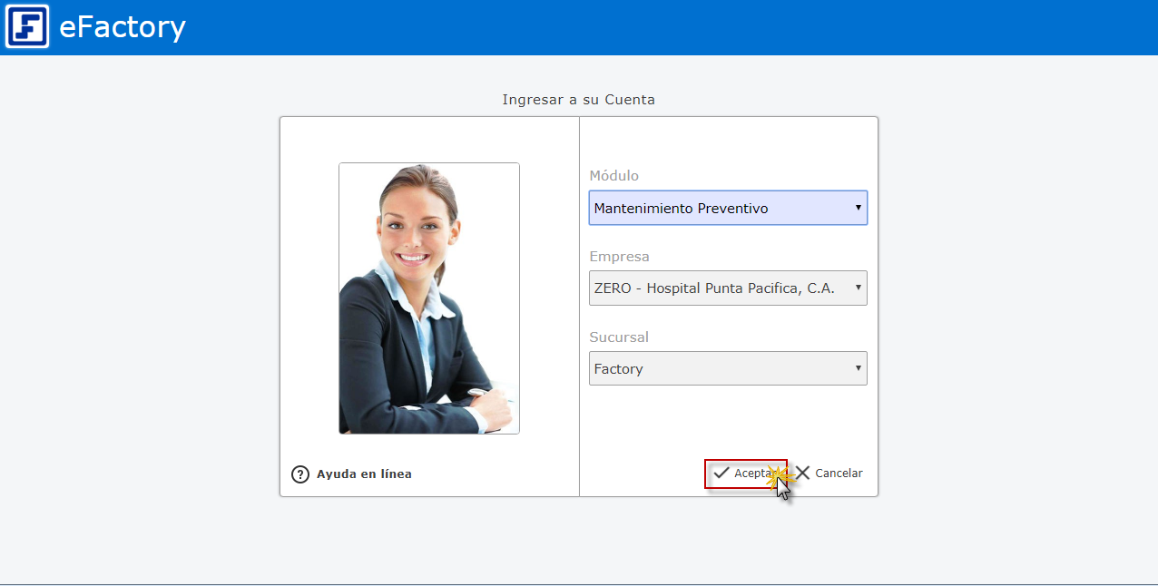 a. Al iniciar eFactory con nuestro Usuario y Contraseña, Seleccionamos el Módulo
