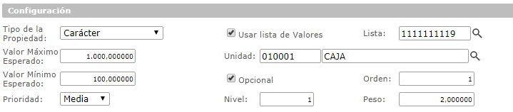 c. 2. Sección Configuración: Reservada a la asignación de características funcionales de tipos de datos y valores referenciales, los campos que contiene se mencionan a continuación: