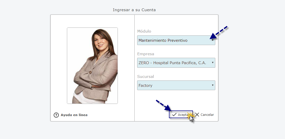 "Manteminiento Preventivo" Empresa y Sucursal de la Empresa y seleccionaremos el botón