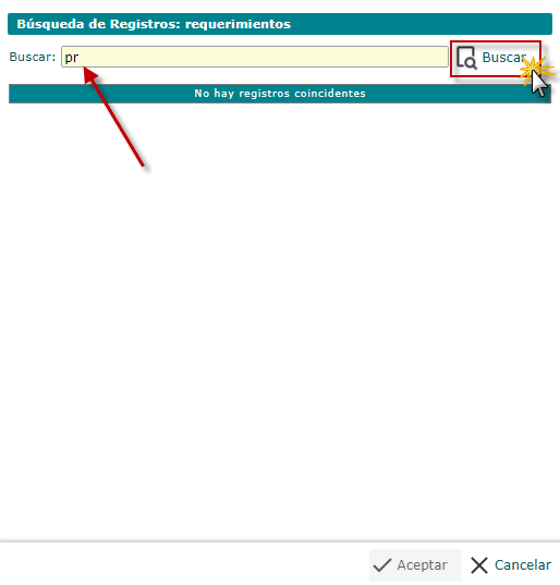 a. Para buscar requerimientos, debemos seleccionar el botón