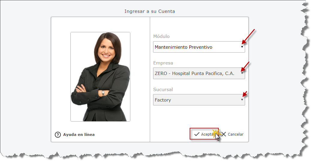 a. Al iniciar eFactory con nuestro Usuario y Contraseña, Seleccionamos el Módulo